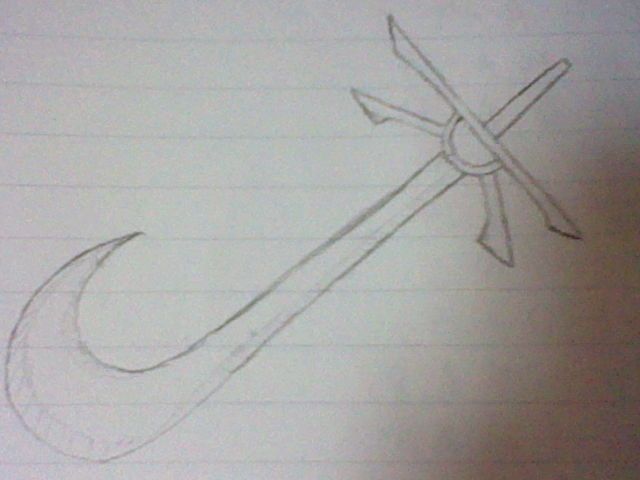 普通のノートに鉛筆だけで武器書いてみました。<br />