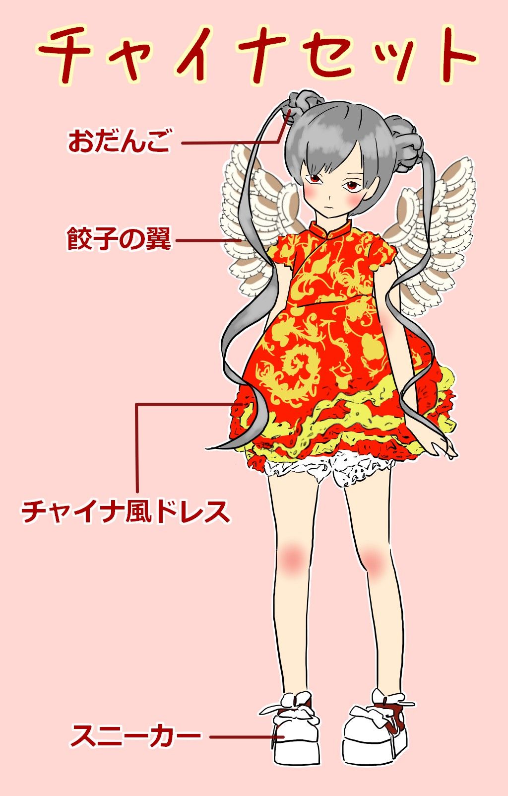 服はきっちりとしたチャイナドレスではなく、女性らしいフリルをつけた洋風のミニドレスにしてみました。