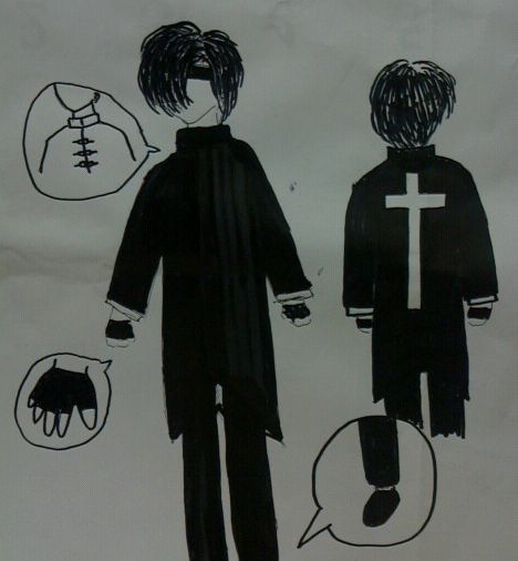 背中の大きな十字架が特徴のカンフースーツ 両手には拳を保護するグローブつき 靴はカンフーシューズ ヘッドアバターにはバンダナを 漆黒の布地に白い十字架が入った服が欲しくてデザインしました 1回アップした時に上着の止め具とかグローブの詳細を描き忘れたのでやりなおしました |