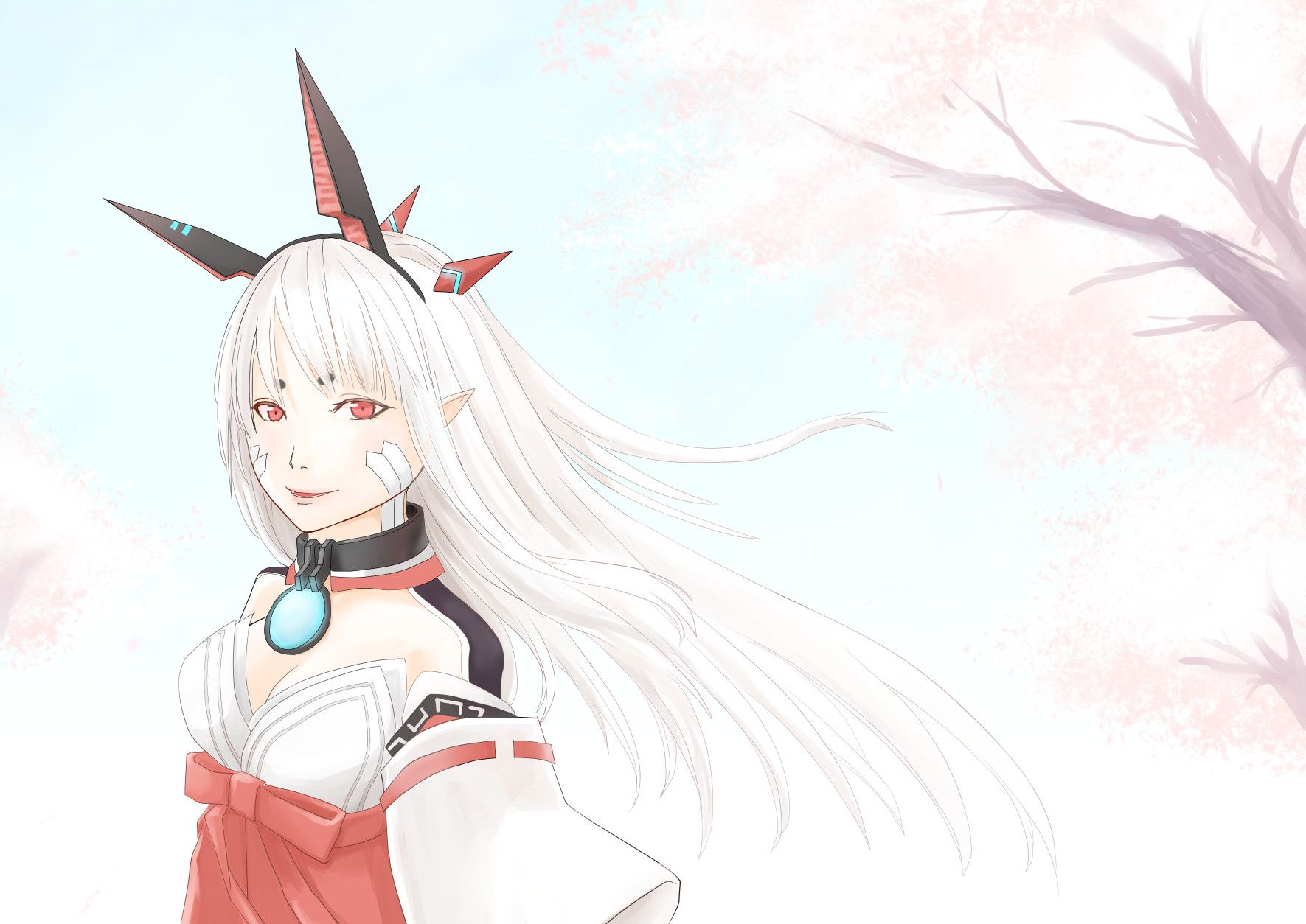 桜が似合いそうという理由だけで玉藻御前を描いてみました。