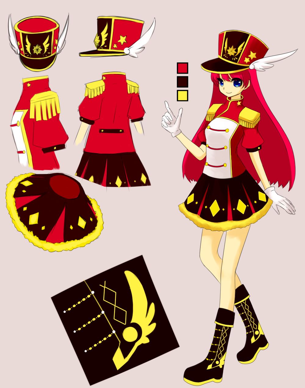 シンプルに星と羽をモチーフしたマーチング風の衣装です。<br />