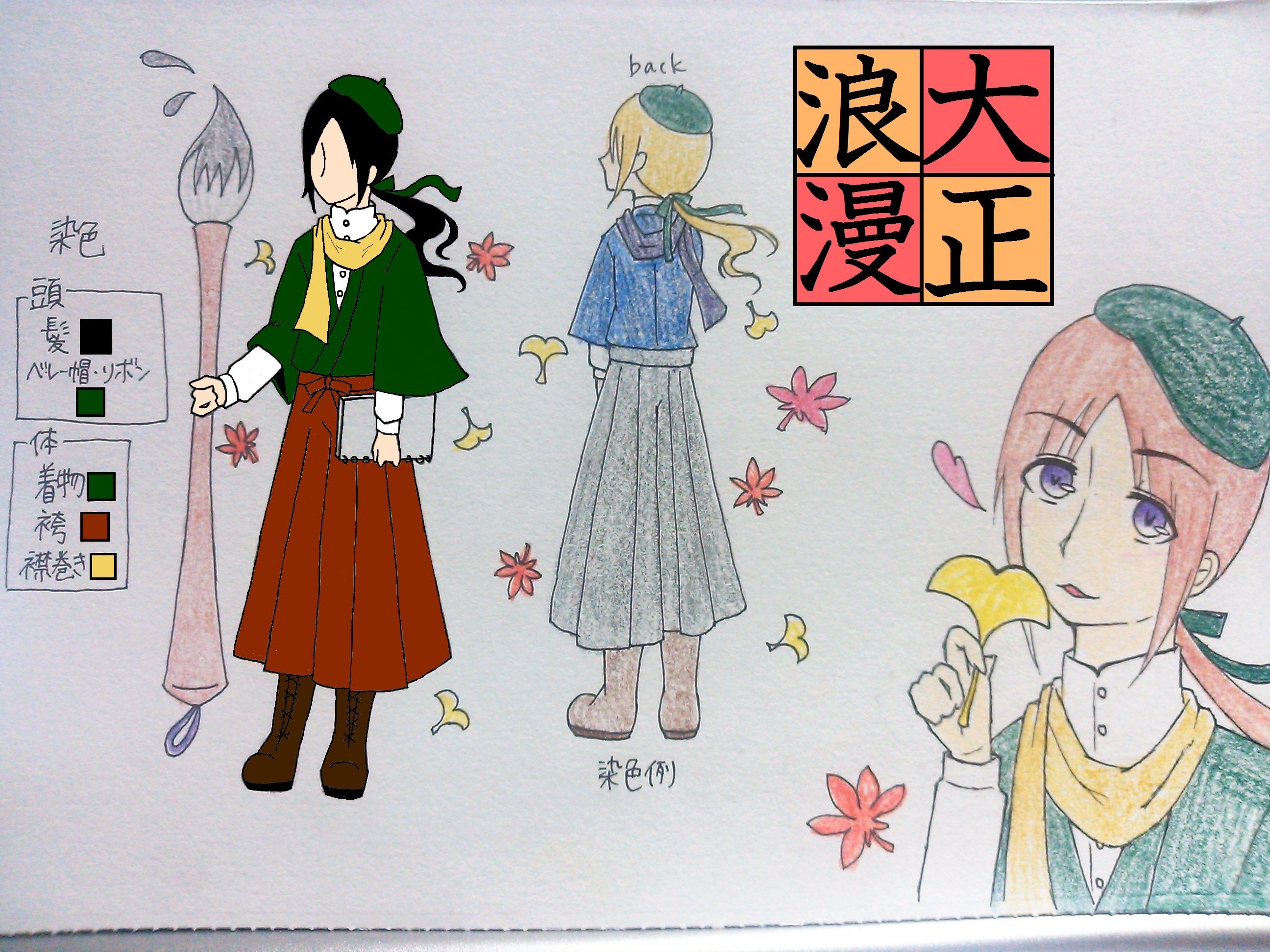 ビバ☆大正浪漫!ブラウスに袴に編み上げブーツ!とってもいいと思います!自分で描いたけど、このお兄さんかっこいいな…。