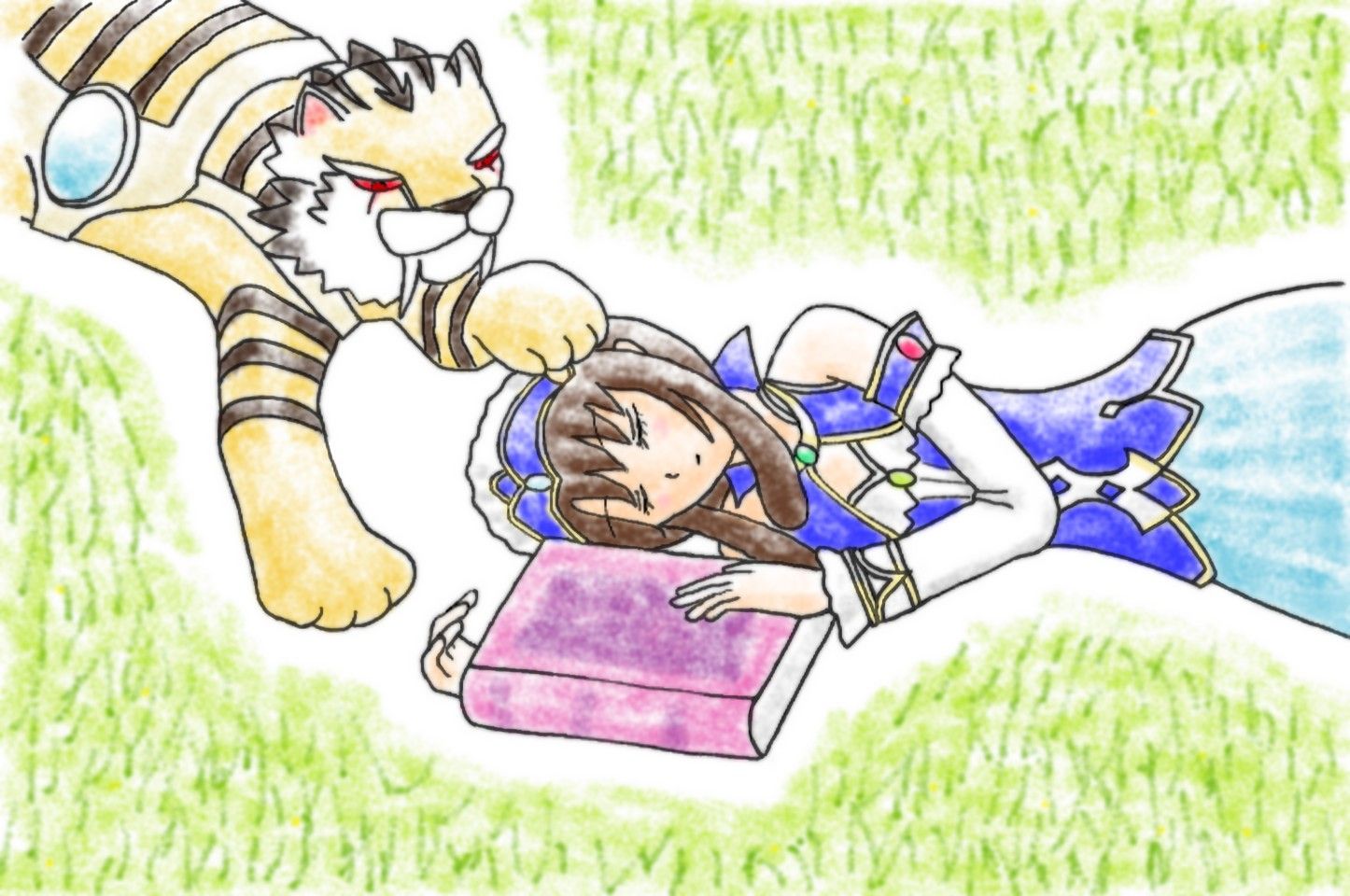 起源の使者ちゃんのお昼寝を邪魔するカエサル将軍。<br />
