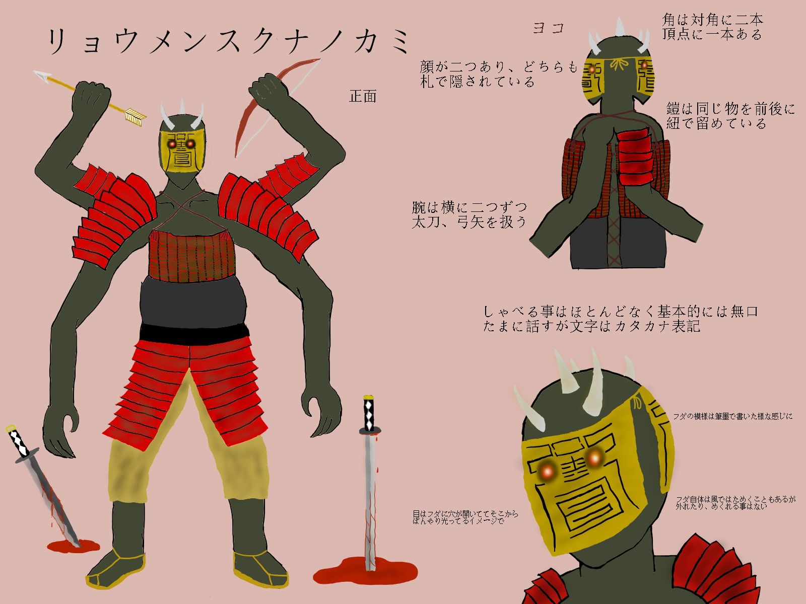 とある地方に存在したとされる二面四つ手の鬼神。