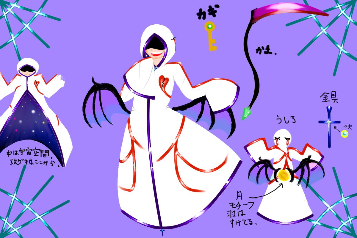 服の中は宇宙空間っぽい異空間、攻撃は腹と袖から出す。