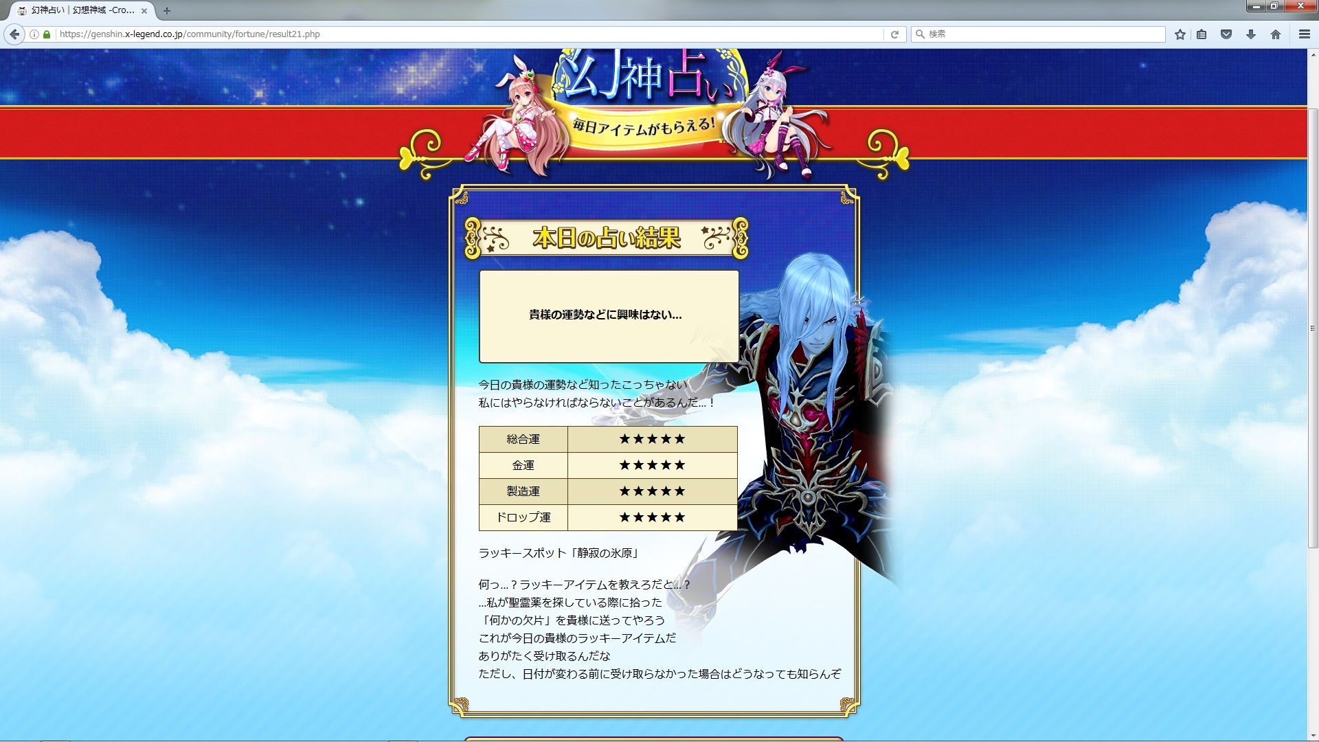 というか、この人何やってんのぉ!?興味ないならなんで占い結果に顔出してるの!? |
