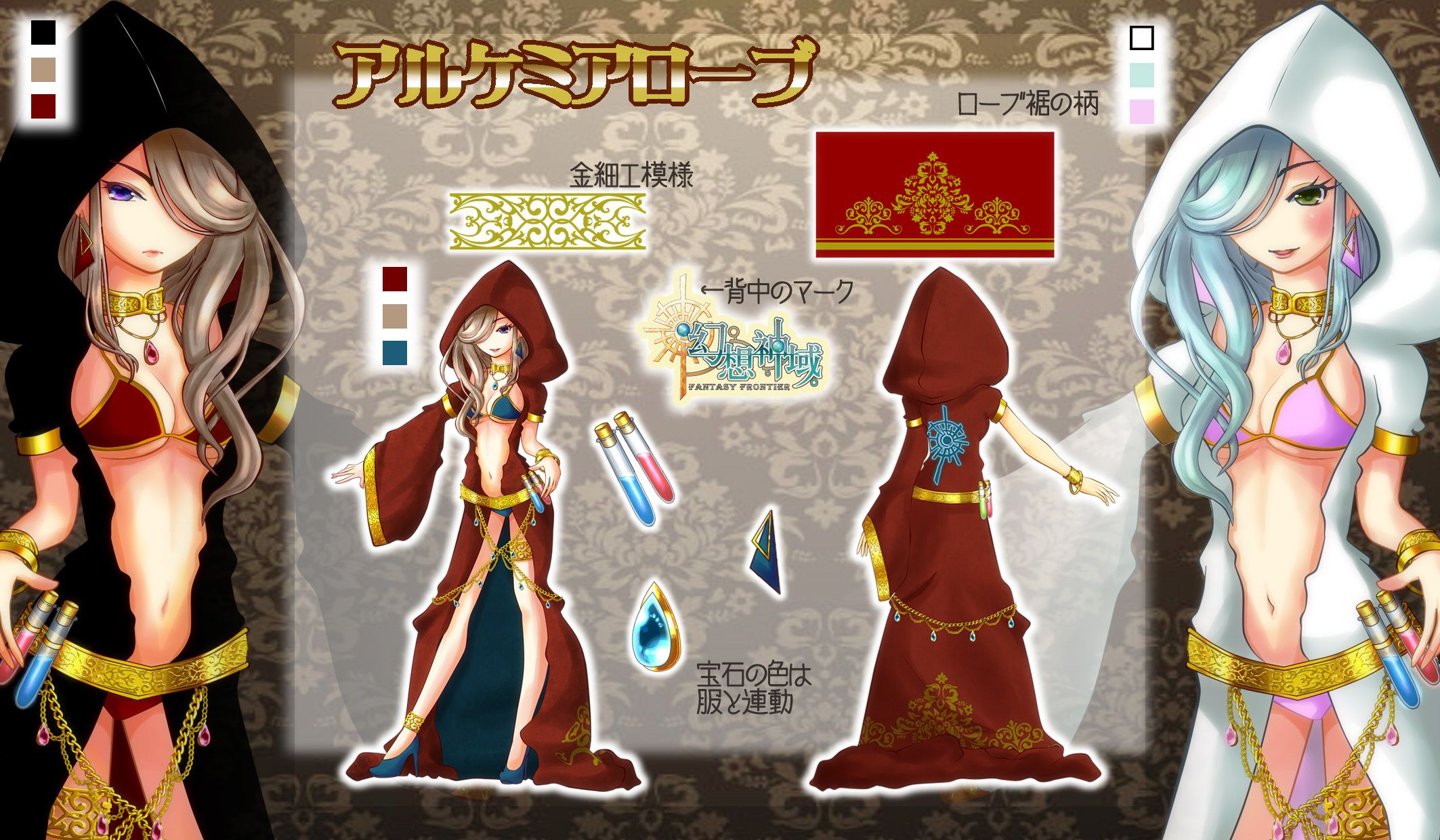 金色の部分とローブの模様、試験管の中身の色は変更不可です。 |