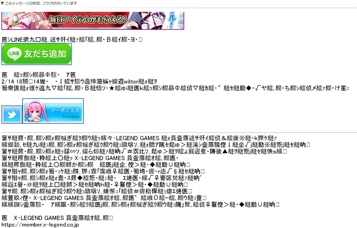 X-Legend社から送られたメールの文字は、 エンコード→日本語の順にやっても字がごちゃごちゃになります。 どうやって直すのでしょう? |