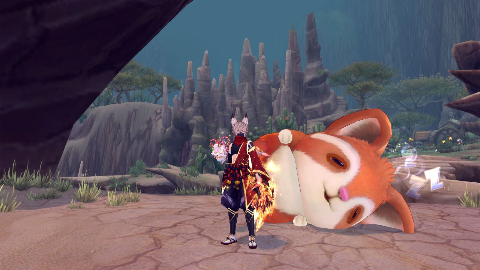 これやった方は知ってると思いますが、とある秘密クエでお会いするラットちゃんです。 寝心地がいいのか、常にそこで寝てます。 |