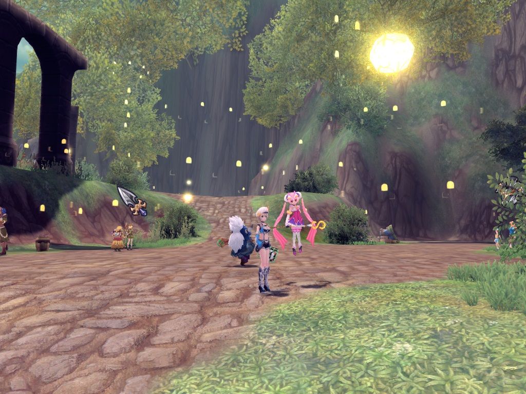 この光の玉ってなんだろ・・ってずっと思っていて、ギルメンに聞いたところ「街頭」だったようです。容量不足なのか不明ですが、一部の橋や家が表示されないので、こんな風になっちゃうみたいです。後ろにいっぱいある光は、表示されていない家だそうです。光だけ浮いてるってある意味幻想ですね!!<br />